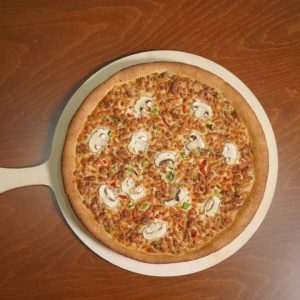 خمیر-راسته گوساله-سینه مرغ-پپرونی-ژامبون میکس-قارچ-فلفل دلمه-زیتون-فلفل هالوپینو-سس-پنیرمیکس