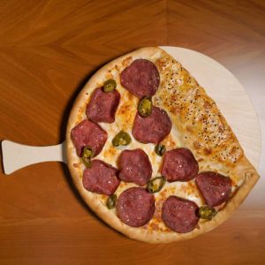 خمیر-پپرونی-ژامبون میکس-راسته گوساله-رول پنیری سوخاری-قارچ-فلفل دلمه-زیتون-فلفل هالوپینو-سس-پنیرمیکس