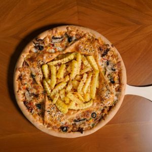 خمیر-راسته گوساله-سینه مرغ-قارچ-زیتون-فلفل دلمه-سس-پنیرمیکس